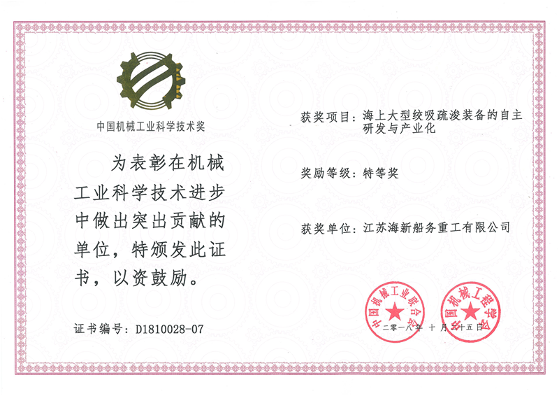 Warmly celebrate haixin heavy industry won the special award     DATE: 2018-11-07 03:00:00    The author:本站