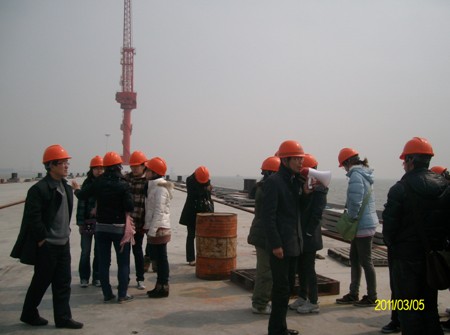 2011年3月5日 星期六 同濟(jì)大學(xué)水利系港口專(zhuān)業(yè)學(xué)生在水利系主任周念清教授和謝立全教授的帶隊(duì)下在我公司海新項(xiàng)目部及新通海沙項(xiàng)目部進(jìn)行“專(zhuān)業(yè)生產(chǎn)實(shí)習(xí)”。
