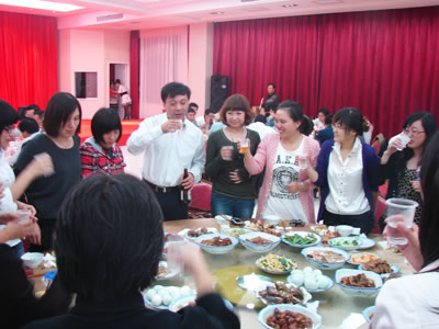 2011年10月8日晚,江蘇海宏建設(shè)工程有限公司和江蘇海新船舶重工有限公司聯(lián)合舉辦的金秋聯(lián)歡晚會(huì)在海新辦公大樓10樓多功能會(huì)議廳隆重舉行。大廳的LED屏上的標(biāo)語(yǔ)“向奮斗在一線的全體員工致以崇高的敬意”格外引人注目。六點(diǎn)整,聯(lián)歡晚會(huì)正式開(kāi)始。為了增加氣氛,公司還特別邀請(qǐng)了專業(yè)演出團(tuán)體前來(lái)助興。臺(tái)上的演出精彩紛呈,臺(tái)下更是歡聲笑語(yǔ)。孟總攜夫人一桌一桌輪流敬酒,向常年工作在一線員工們表示感謝。聯(lián)歡會(huì)上兩個(gè)公司的員工們不分彼此,其樂(lè)融融宛如一個(gè)龐大的家族。