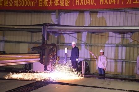 江蘇海新重工副董事長(zhǎng)陳五洲主持開(kāi)工儀式,江蘇海新重工孟咸宏董事長(zhǎng)致歡迎詞。中國(guó)船級(jí)社江蘇分社張凱總經(jīng)理、中交上海航道局有限公司侯曉明董事長(zhǎng)發(fā)表了熱情洋溢的講話(huà)。侯曉明董事長(zhǎng)充分肯定了與江蘇海新重工前期合作的成果,展望了今后合作的前景,同時(shí)對(duì)本次建造的3000 m³自航開(kāi)體駁寄予了殷切的希望。最后在公司聯(lián)合車(chē)間,上海交通建設(shè)總承包公司周顯田開(kāi)啟了開(kāi)工按鈕,儀式在焰火四射的熱烈氣氛中結(jié)束。