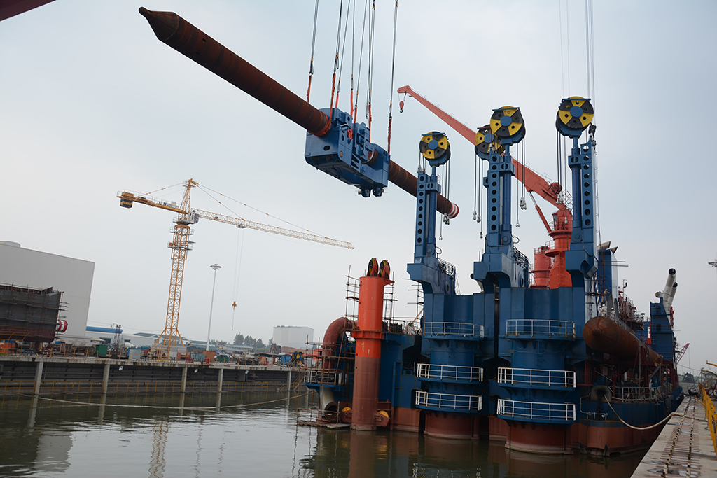 此次鋼樁夾具系統(tǒng)的吊裝是海新重工在大型絞吸式挖泥船建造工藝上的重大工藝突破,標(biāo)志著海新重工在特種挖泥船建造的技藝越來越成熟,越來越先進(jìn),距離“創(chuàng)造時代精品,鑄就民族品牌”的偉大目標(biāo)更近了一步!