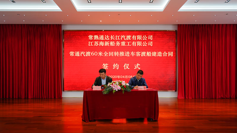 2020年04月08日上午,江蘇海新船務(wù)重工有限公司與常熟通達(dá)長江汽渡有限公司在海新公司七樓會(huì)議室舉行了60 米全回轉(zhuǎn)推進(jìn)車客渡船簽約儀式。