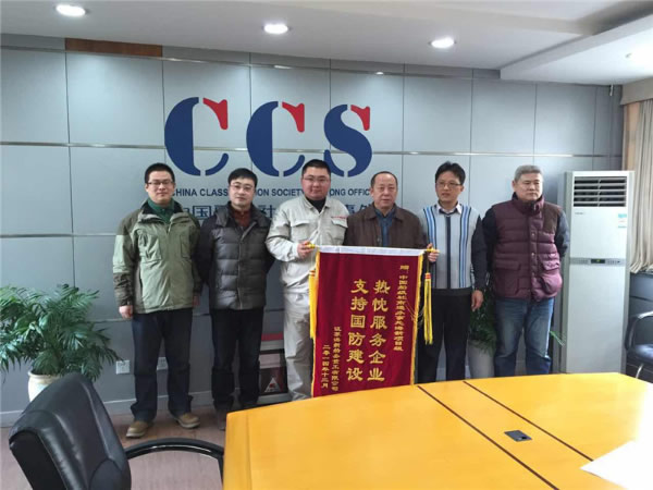 2014年12月15日上午,江蘇海新船務(wù)重工有限公司質(zhì)量部一行來到中國(guó)船級(jí)社南通辦事處,將一面寫著熱忱服務(wù)企業(yè),支持國(guó)防建設(shè)的鮮紅錦旗親手交到中國(guó)船級(jí)社南通辦事處姚群敏局長(zhǎng)...
