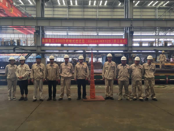 2016年10月18日上午8時58分,由江蘇海新船務重工有限公司承建的江蘇海事局常熟白茆河口躉船浮碼頭工程----60米躉船在海新重工聯(lián)合車間舉行開工儀式! 船東方:中華人民共和國常熟海...