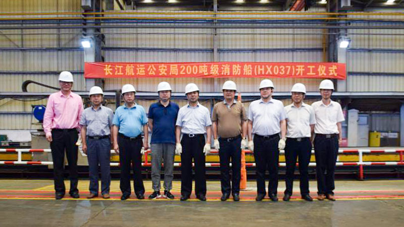 2018年6月14日上午10:38分,航運(yùn)公安局岳陽分局王愛民局長(zhǎng)按下了啟動(dòng)按鈕,200噸級(jí)消防船(HX037)正式開工。...